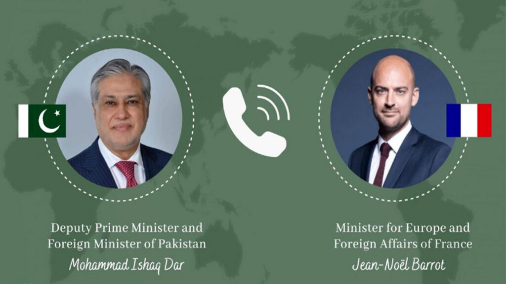 Le vice-Premier Ministre Ishaq Dar a reçu aujourd’hui un appel téléphonique du Ministre Français des Affaires Étrangères, Jean-Noël Barrot.
